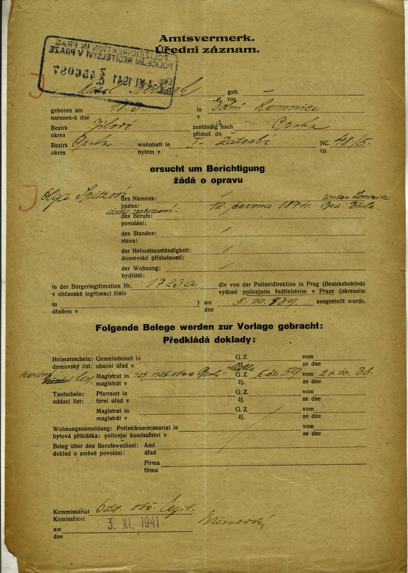 For publication purposes, contact the National Archives in Prague, where the original document is located. The document was digitized by the Terezín Initiative Institute, the Terezín Album project