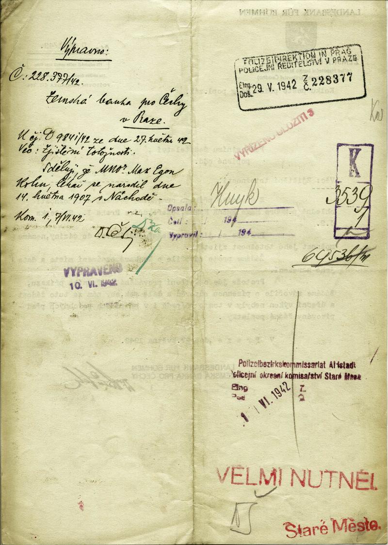 National archives Prague > Police Directorate Prague > 1941-1950 > K > Kohn Egon