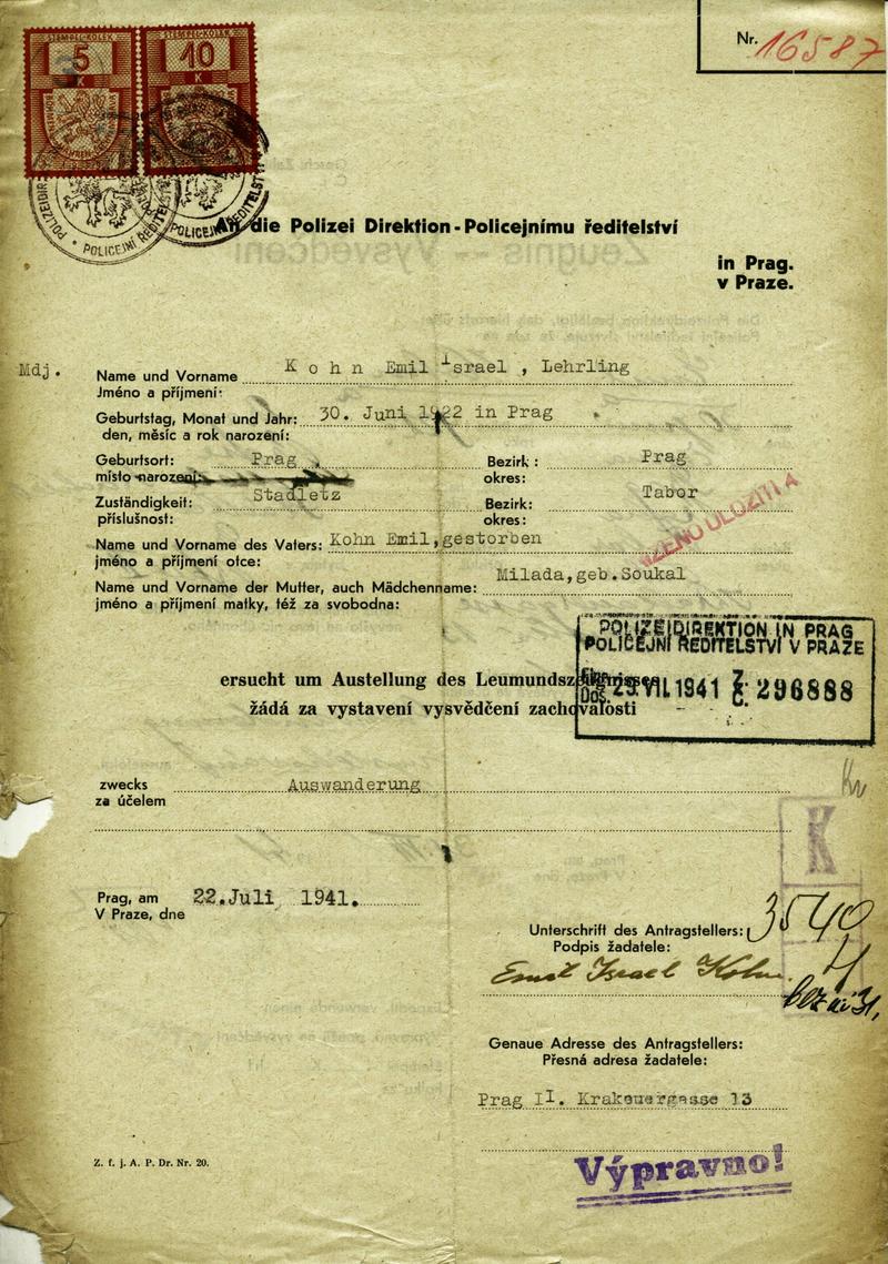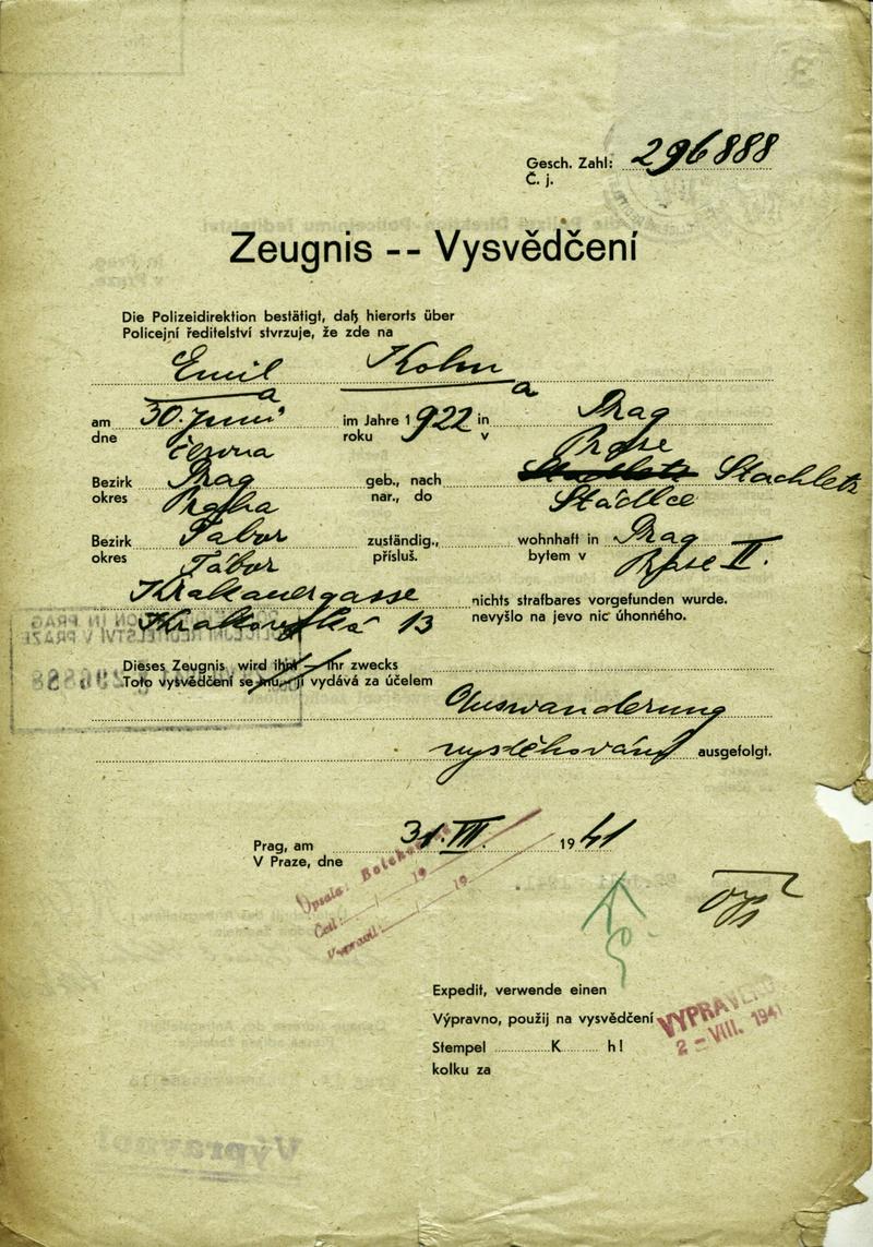 National archives Prague > Police Directorate Prague > 1941-1950 > K > Kohn Emil