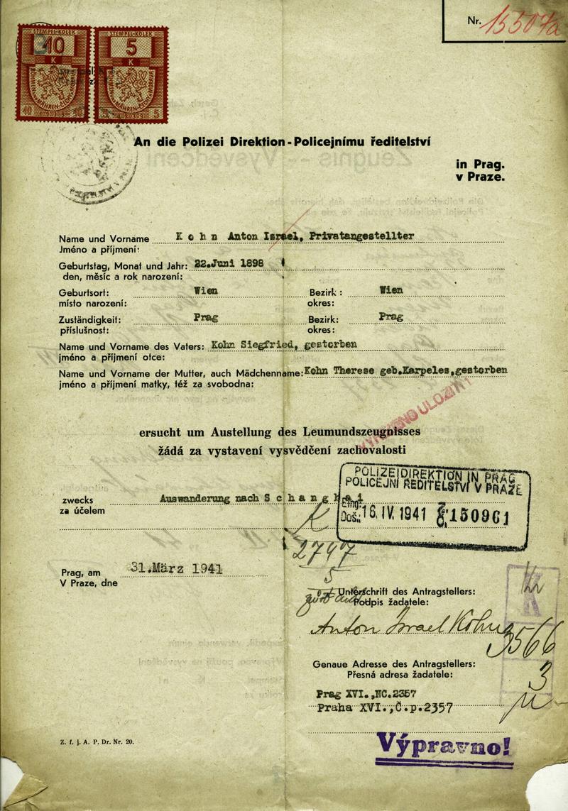 National archives Prague > Police Directorate Prague > 1941-1950 > K > Kohn Antonín
