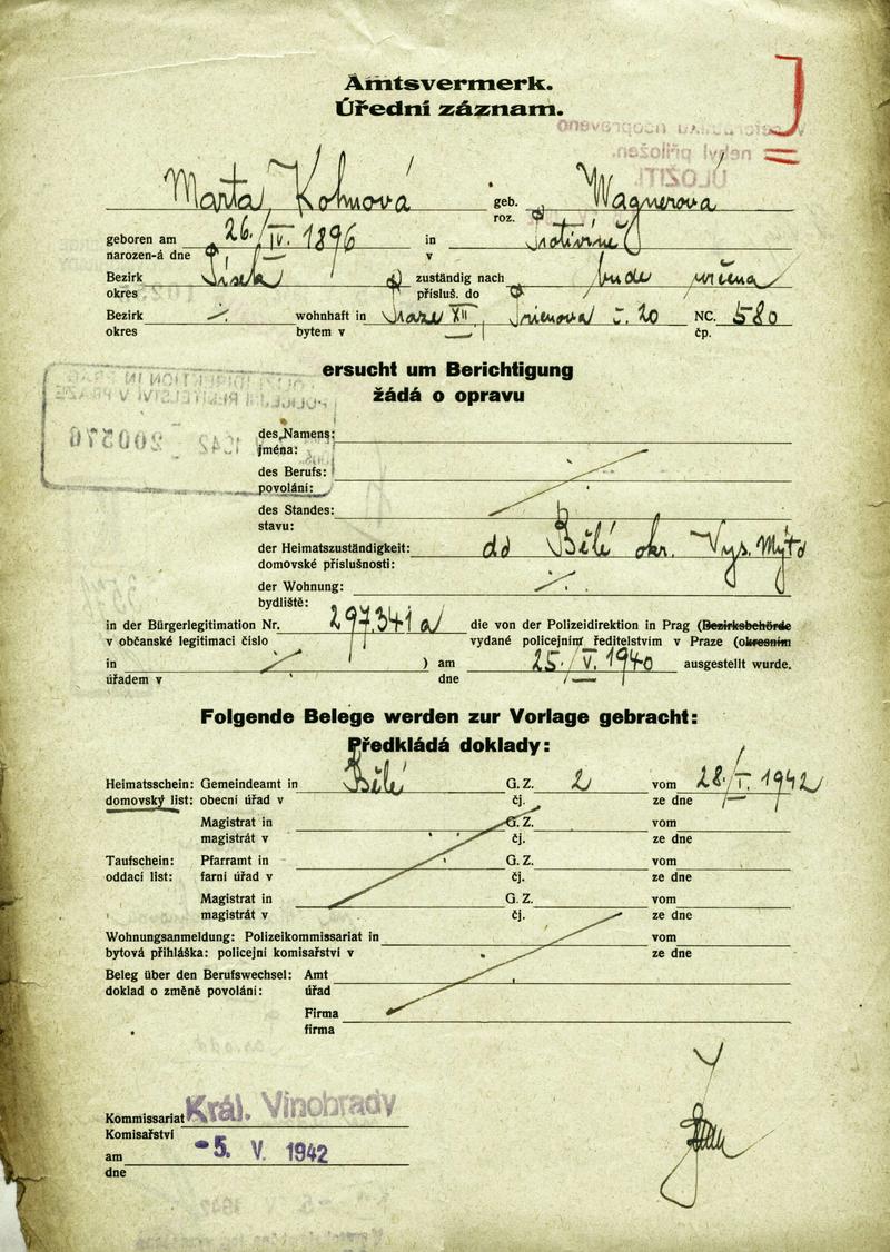 National archives Prague > Police Directorate Prague > 1941-1950 > K > Kohnová Marta