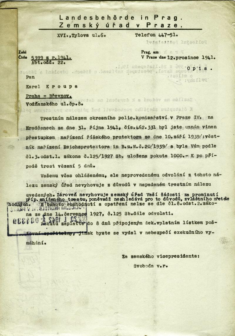 National archives Prague > Police Directorate Prague > 1941-1950 > K > Kroupa Karel