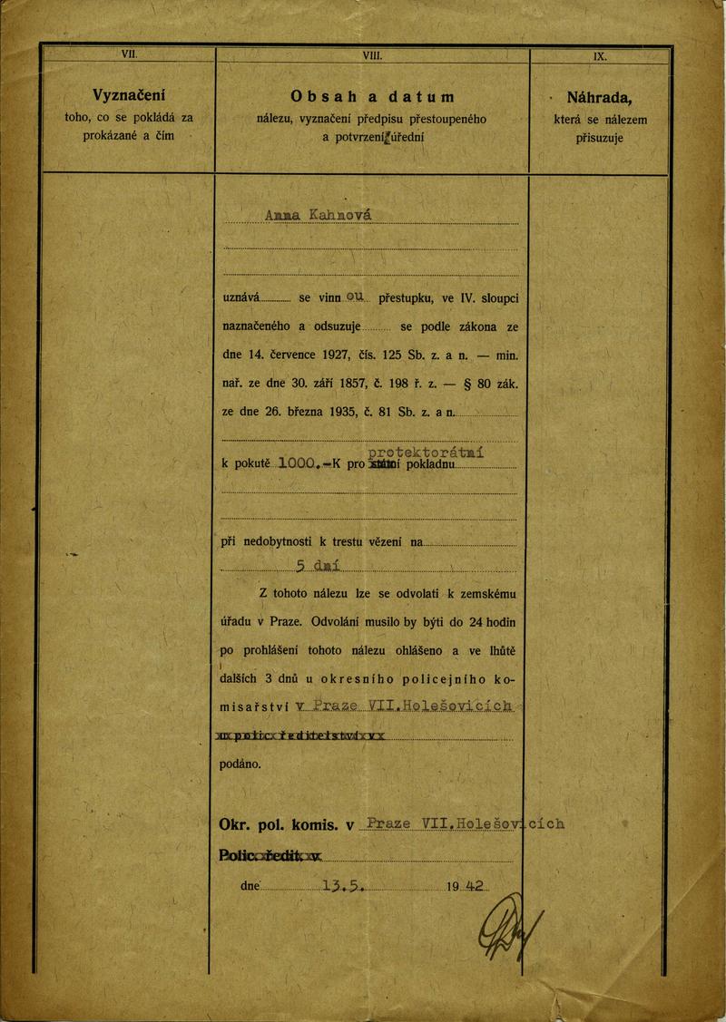 National archives Prague > Police Directorate Prague > 1941-1950 > K > Kahnová Anna