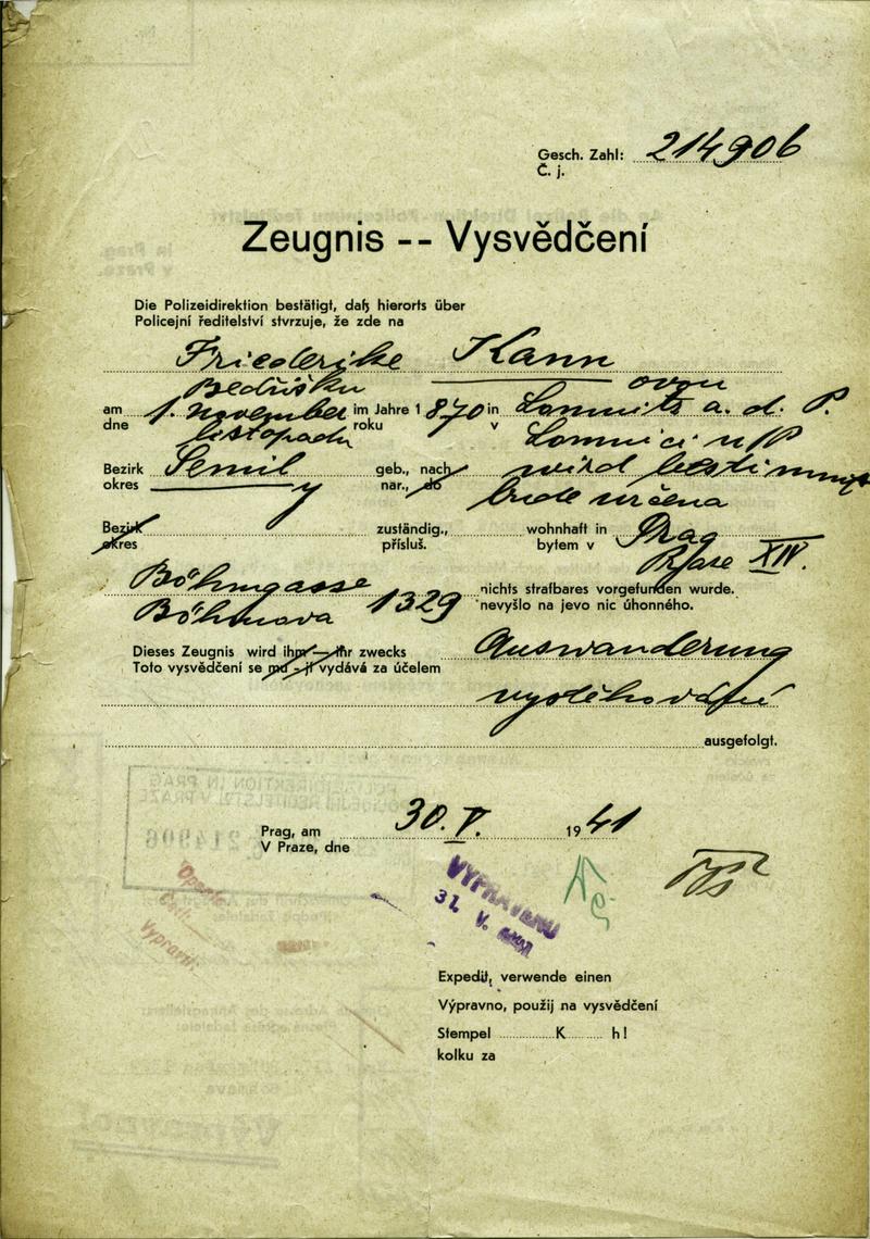 For publication purposes, contact the National Archives in Prague, where the original document is located. The document was digitized by the Terezín Initiative Institute, the Terezín Album project