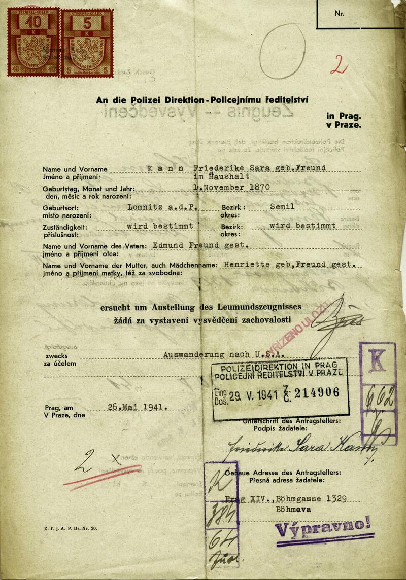 National archives Prague > Police Directorate Prague > 1941-1950 > K > Kannová Bedřiška