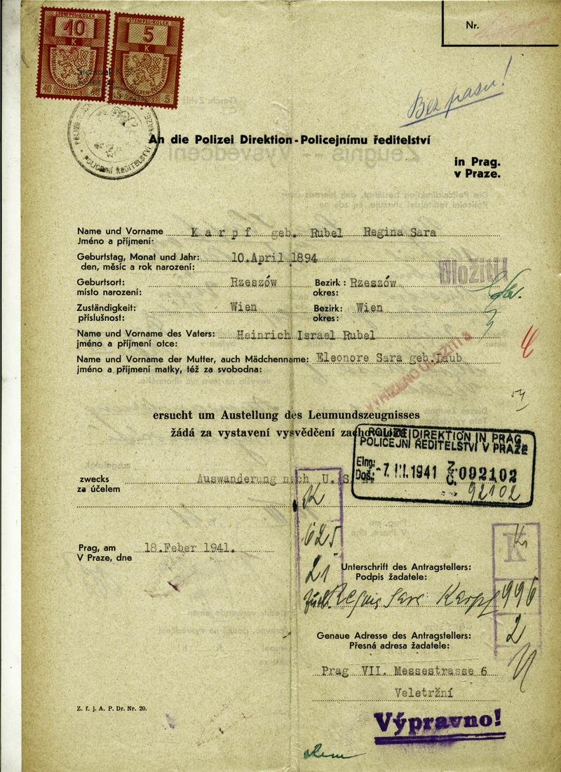 National archives Prague > Police Directorate Prague > 1941-1950 > K > Karpfová Regina