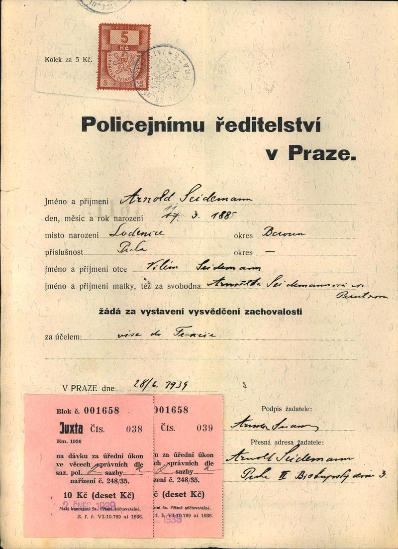 National archives Prague > Police Directorate Prague > 1931-1940 > S > Seidemann Arnold