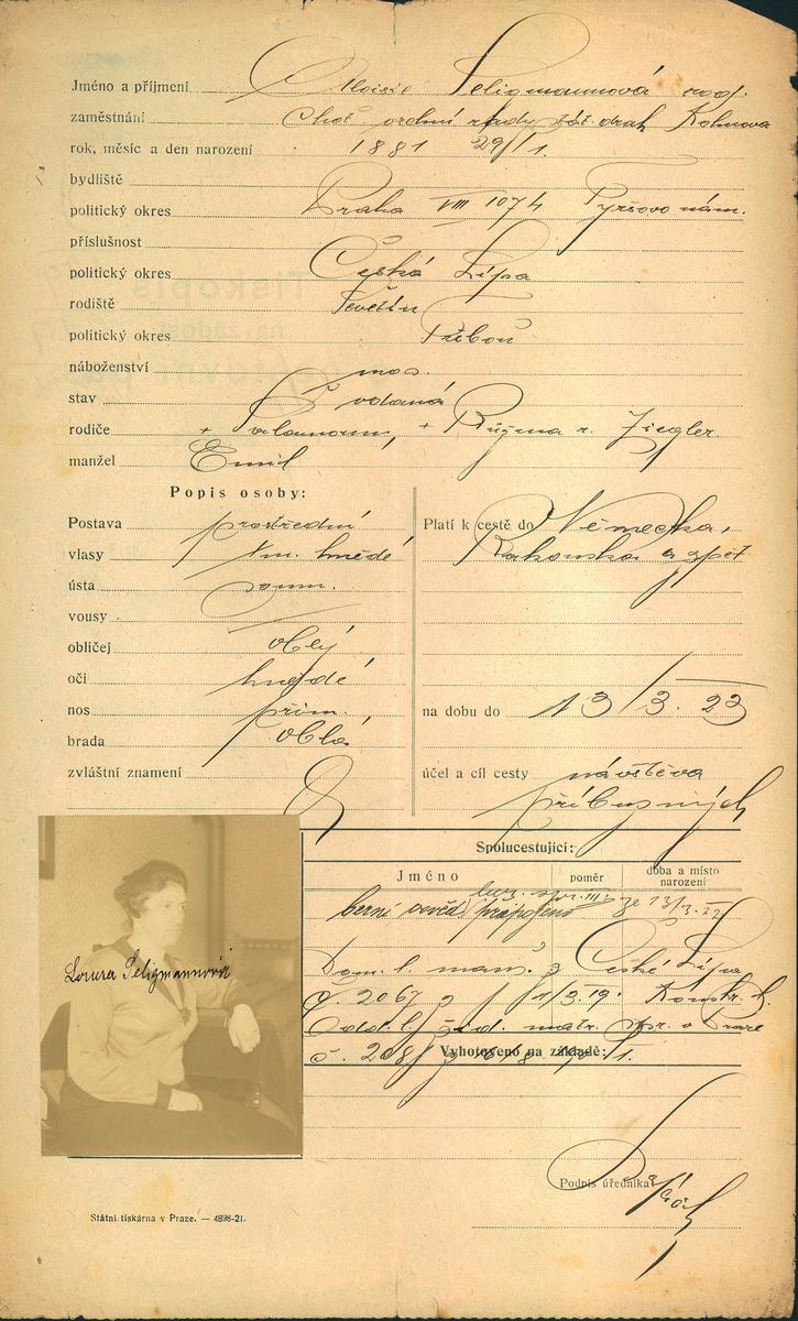 National archives Prague > Police Directorate Prague > 1931-1940 > S > Seligmannová Luisa