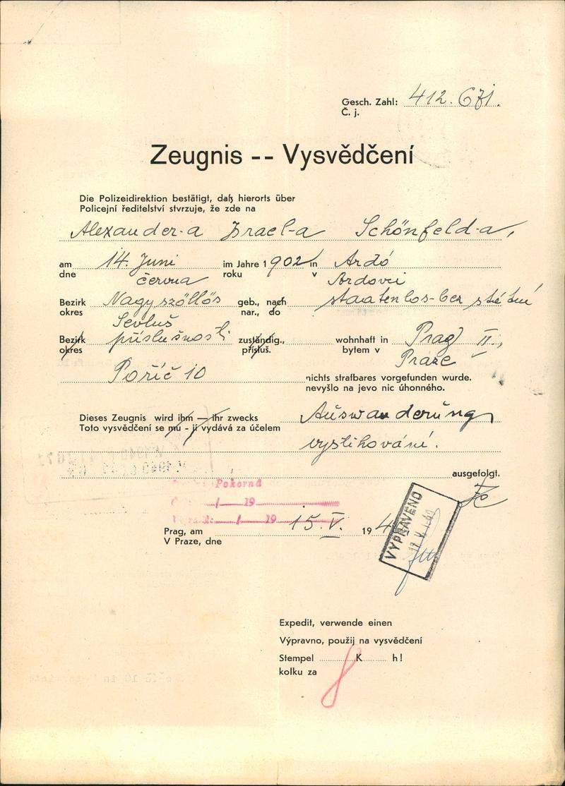 National archives Prague > Police Directorate Prague > 1931-1940 > S > Schönfeld Alexander