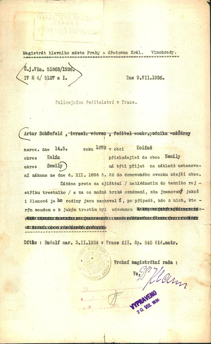 National archives Prague > Police Directorate Prague > 1931-1940 > S > Schönfeld Artur