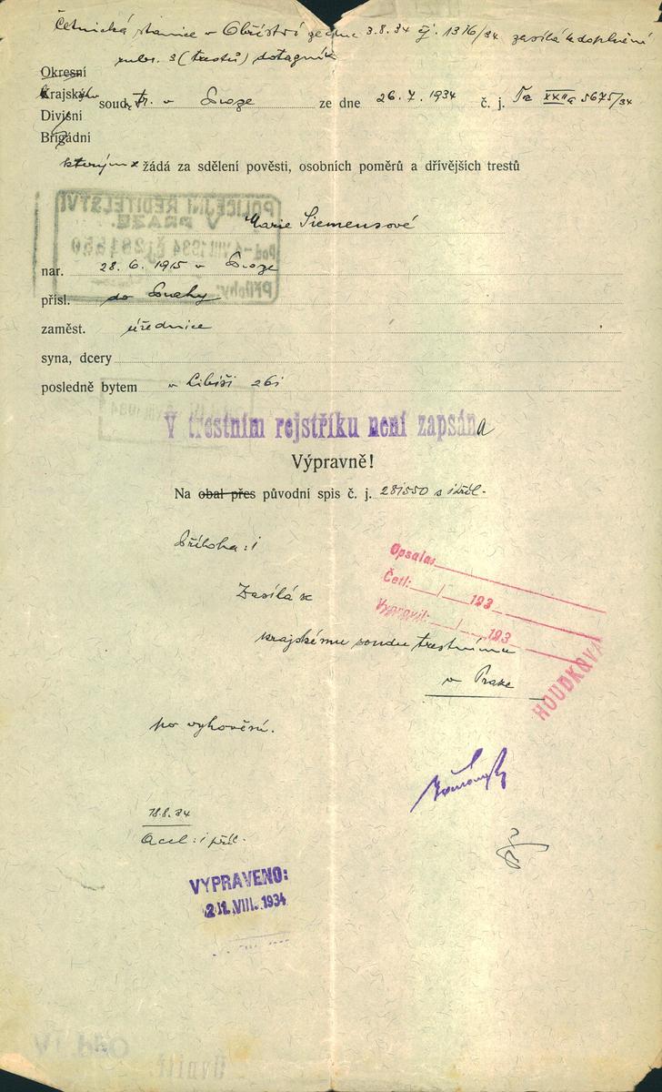 National archives Prague > Police Directorate Prague > 1931-1940 > S > Siemensová Marie