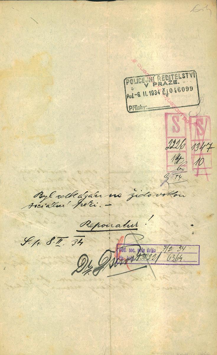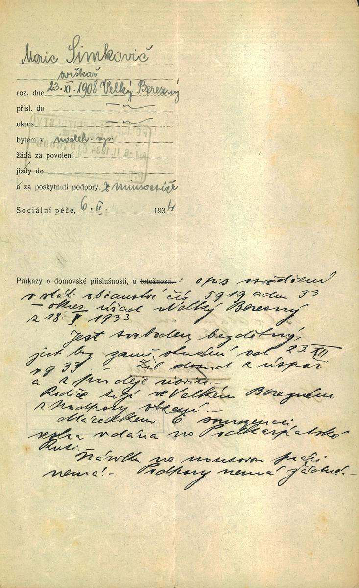 National archives Prague > Police Directorate Prague > 1931-1940 > S > Simkovič Mořic
