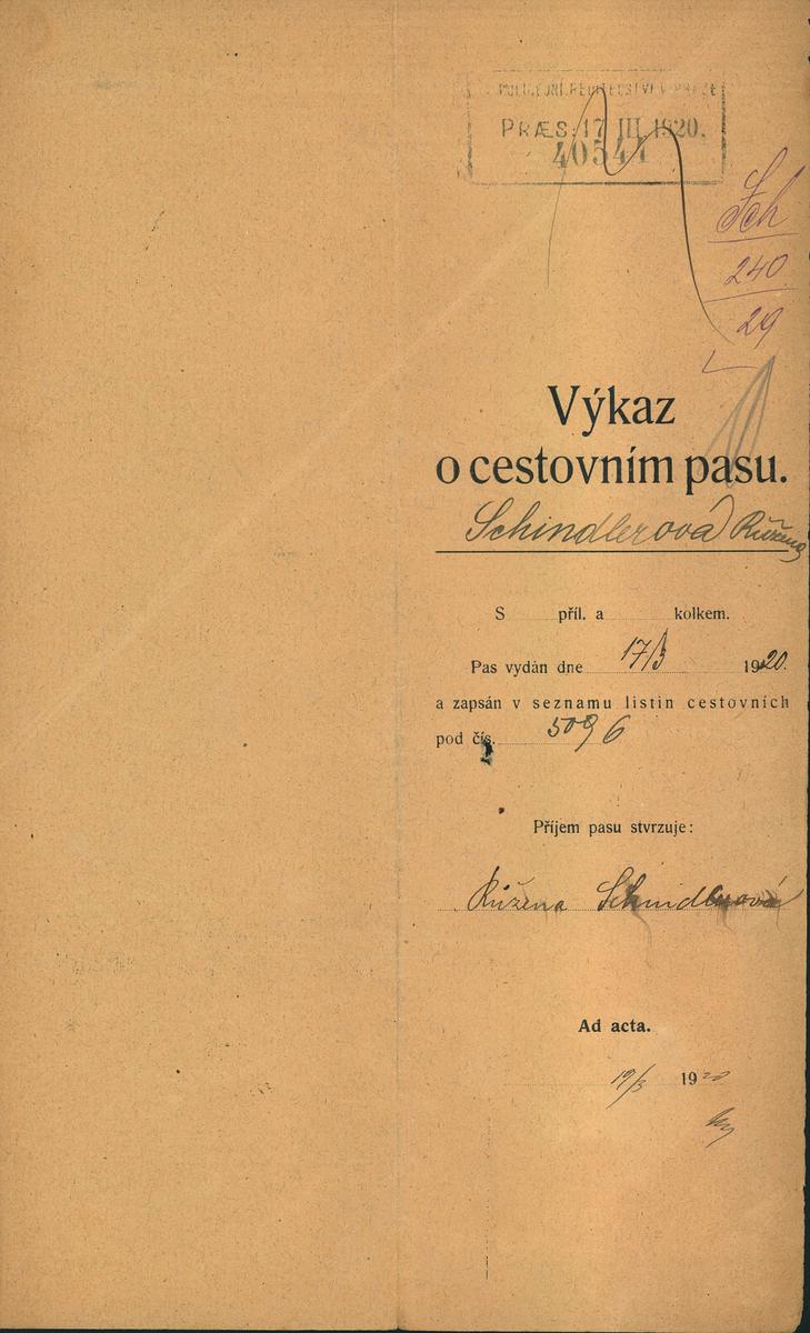 National archives Prague > Police Directorate Prague > 1931-1940 > S > Schindlerová Růžena