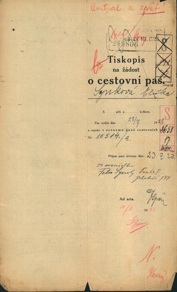 National archives Prague > Police Directorate Prague > 1931-1940 > S > Synková Alžběta