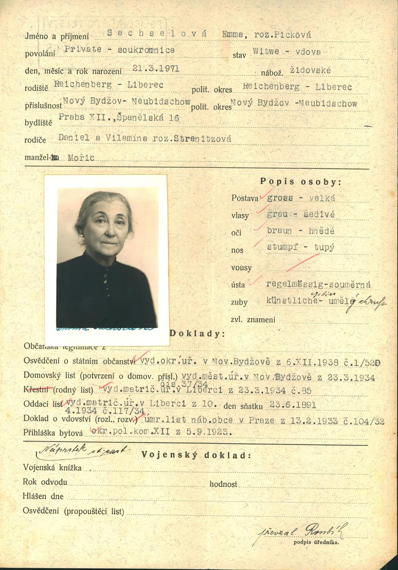National archives Prague > Police Directorate Prague > 1931-1940 > S > Sachselová Emma