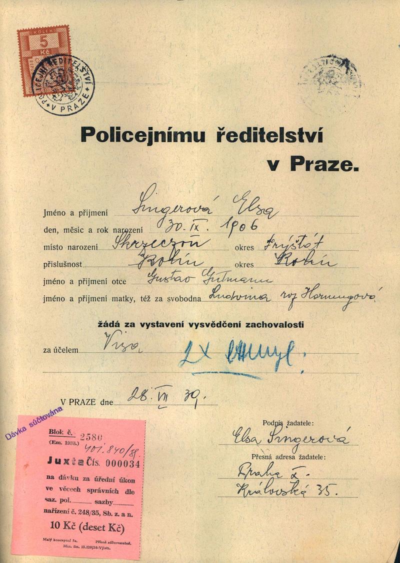National archives Prague > Police Directorate Prague > 1931-1940 > S > Singerová Eliška