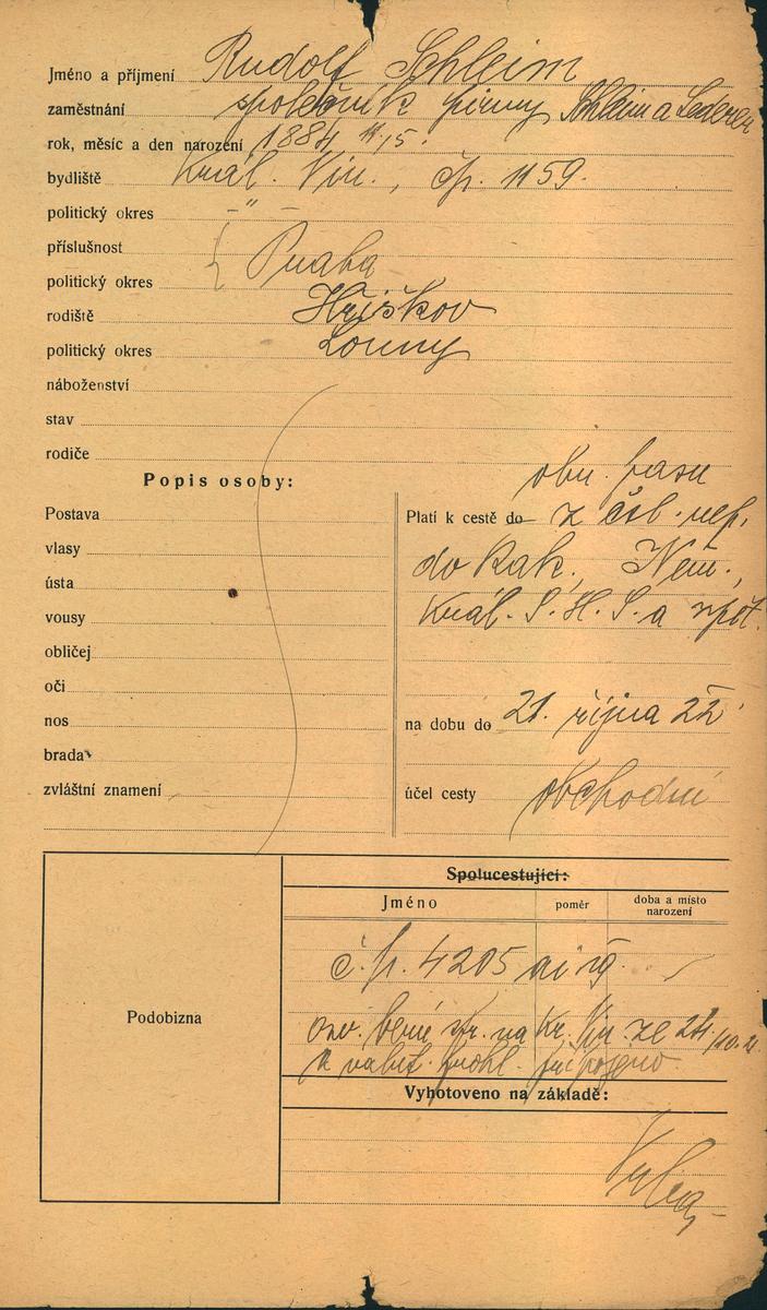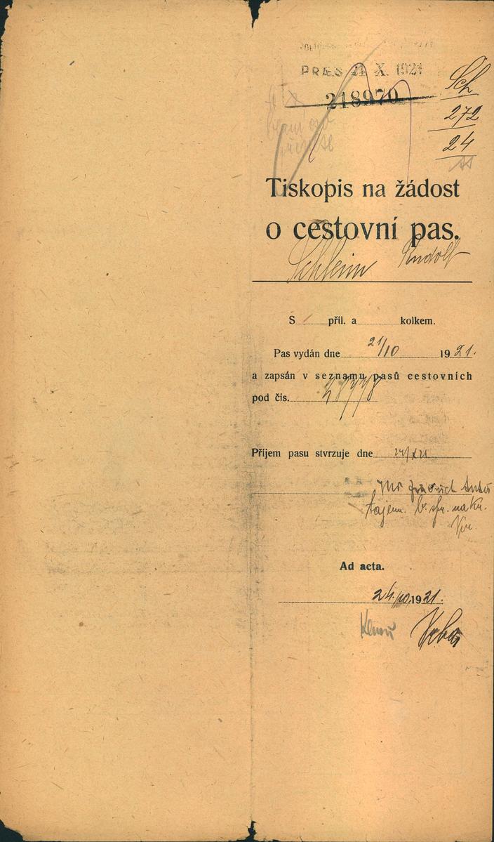 National archives Prague > Police Directorate Prague > 1931-1940 > S > Schleim Rudolf