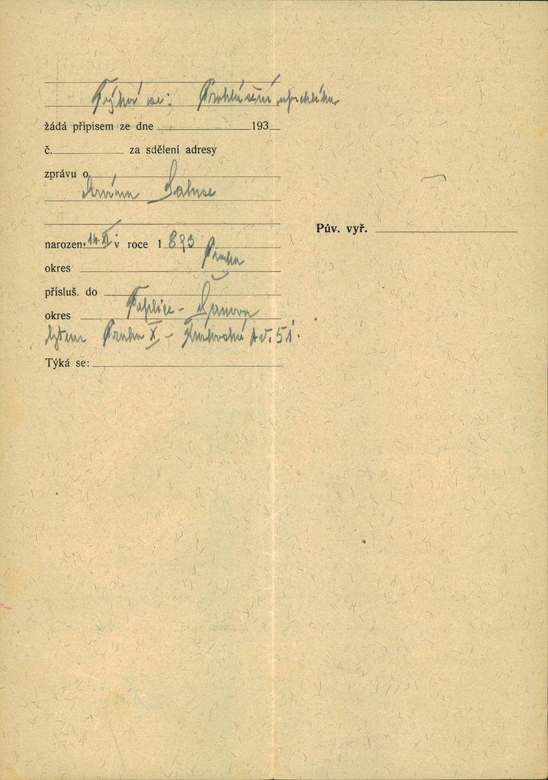 For publication purposes, contact the National Archives in Prague, where the original document is located. The document was digitized by the Terezín Initiative Institute, the Terezín Album project