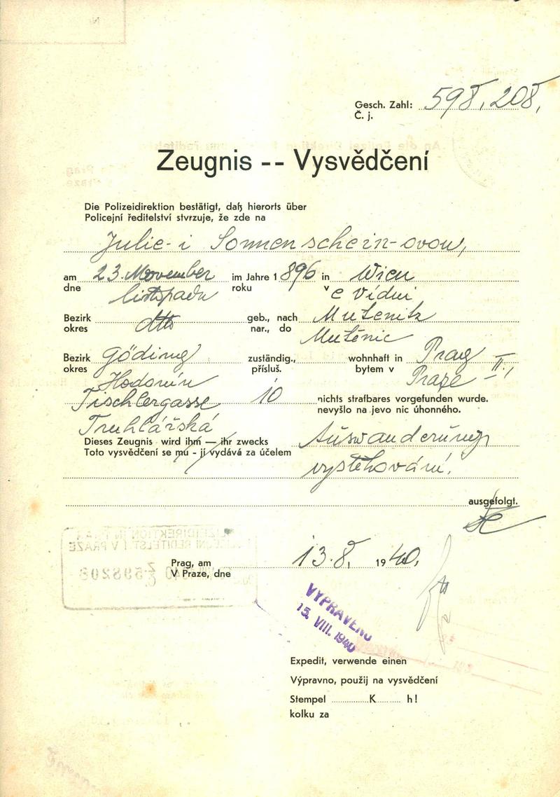 This database contains the names and fates of those who were deported from the territory of today’s Czech Republic, be it their homeland or may they have been deported to the Theresienstadt ghetto before from different european countries. Further, it contains basic information on those men, women and children, most of whom were Roma or Sinti, who died as prisoners of the so-called „Gypsy camp I“ Lety u Písku.