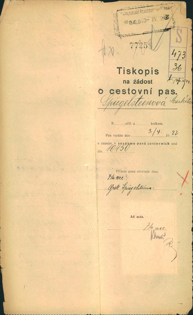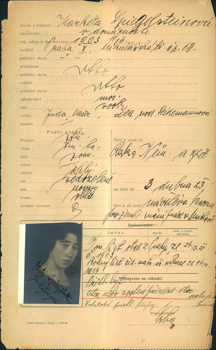 National archives Prague > Police Directorate Prague > 1931-1940 > S > Spiegelsteinová Greta