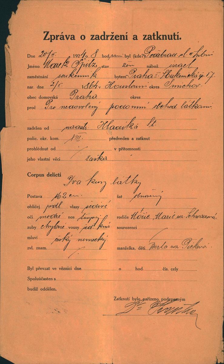 National archives Prague > Police Directorate Prague > 1931-1940 > S > Spitz Marek