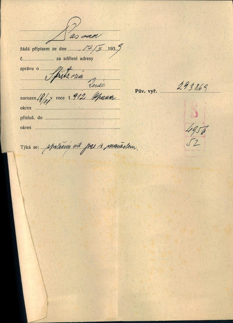 National archives Prague > Police Directorate Prague > 1931-1940 > S > Spitzová Rennée