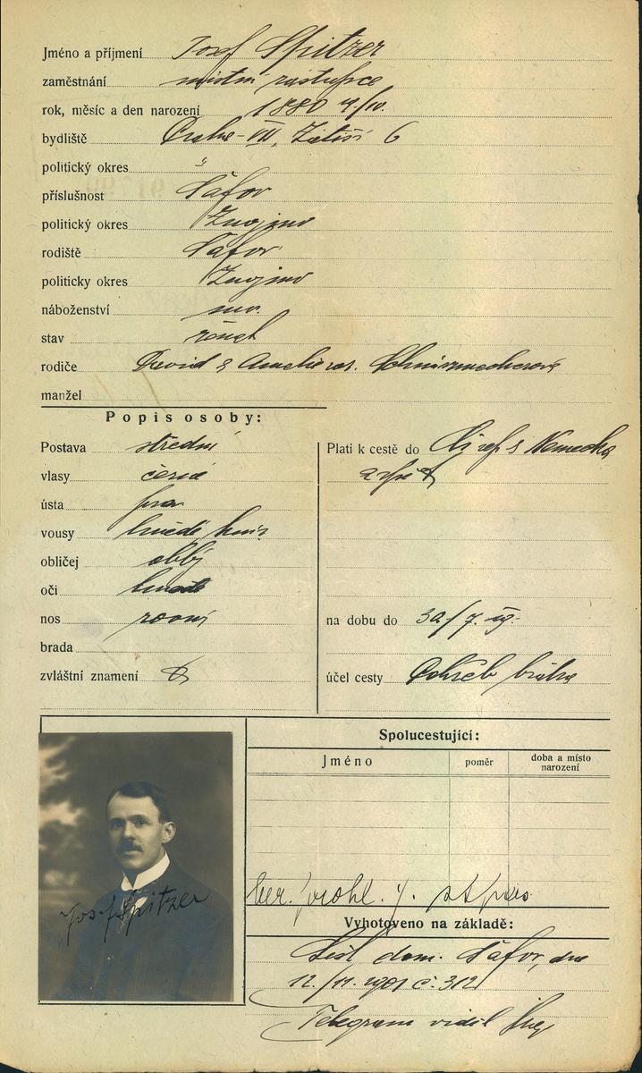 National archives Prague > Police Directorate Prague > 1931-1940 > S > Spitzer Josef