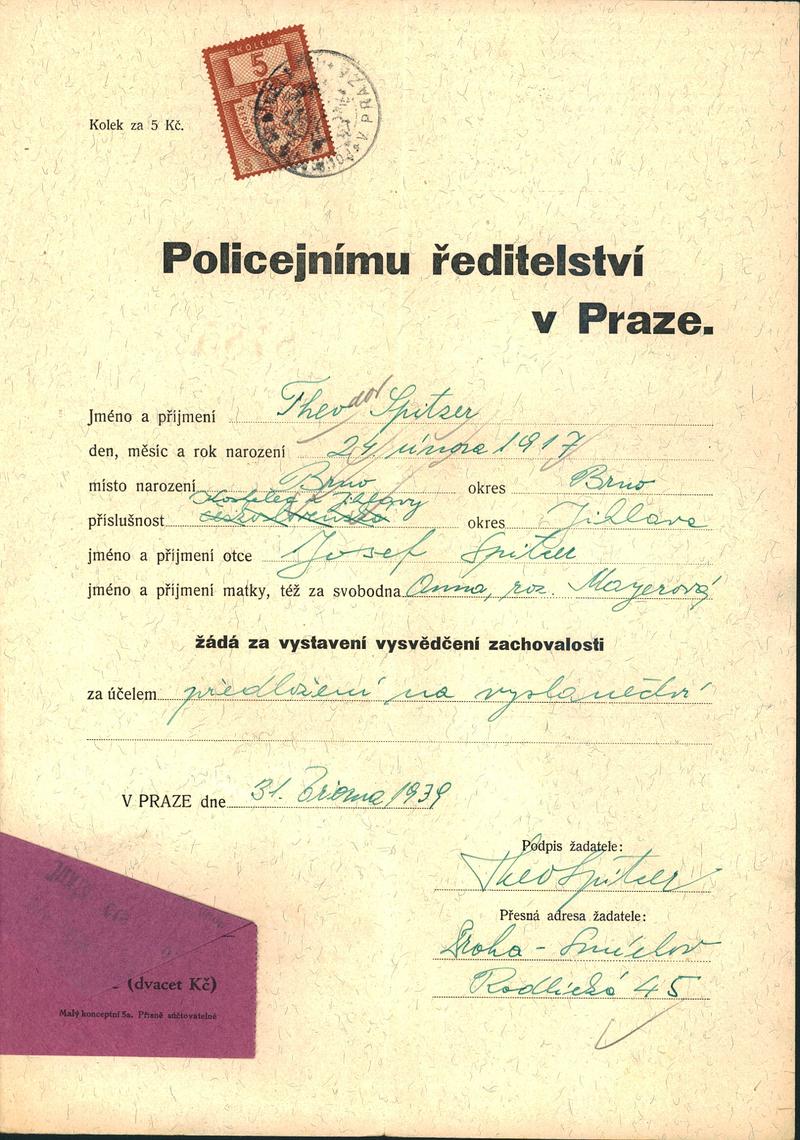 National archives Prague > Police Directorate Prague > 1931-1940 > S > Spitzer Theodor