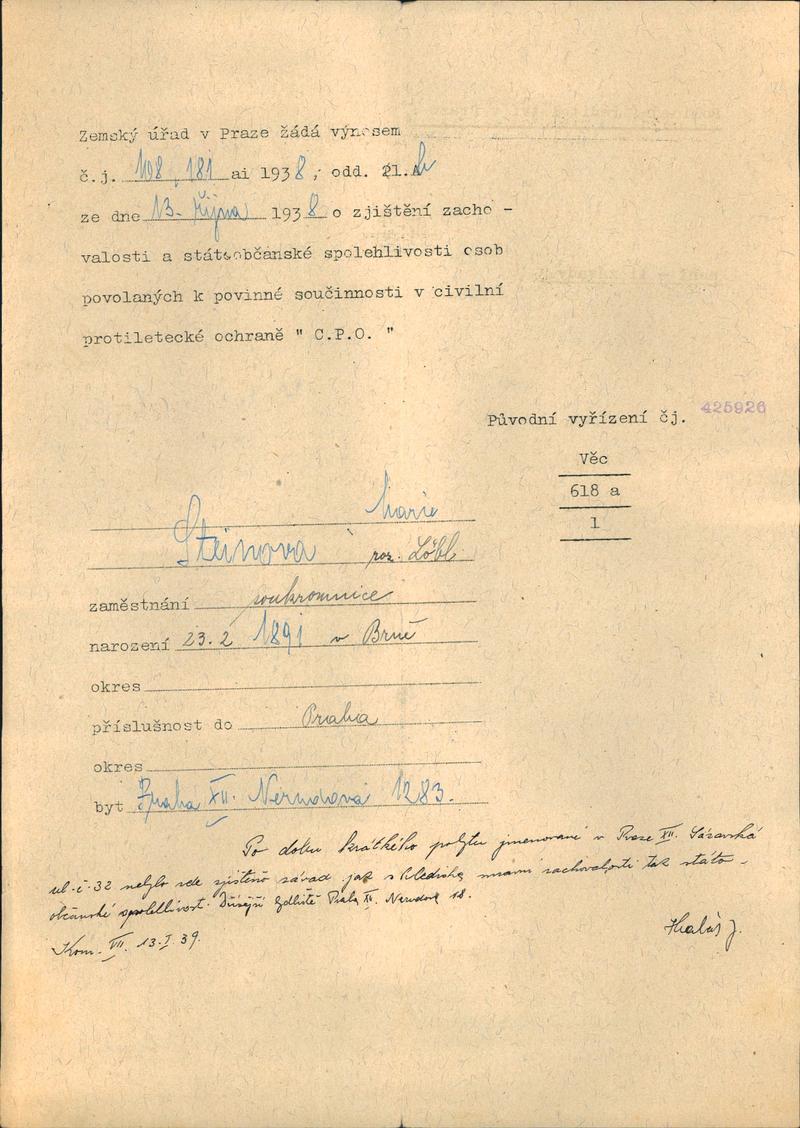 National archives Prague > Police Directorate Prague > 1931-1940 > S > Steinová Marie