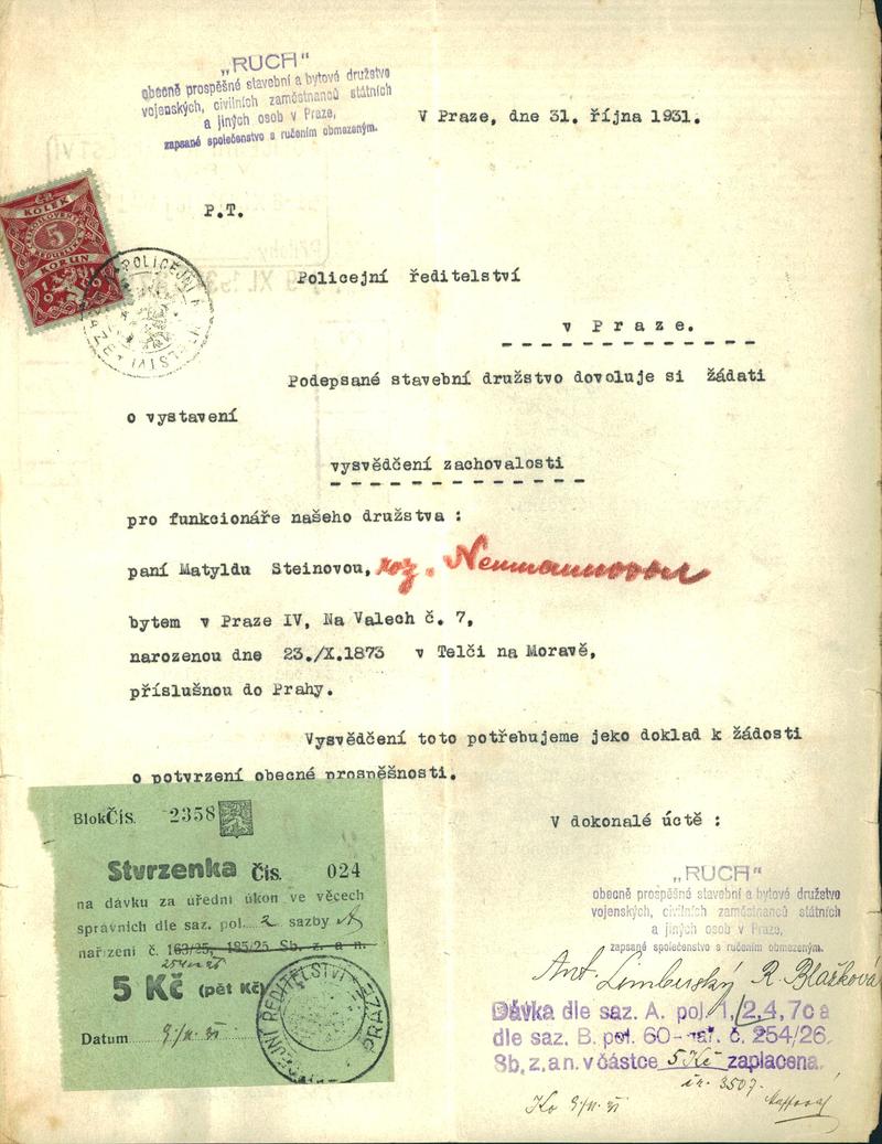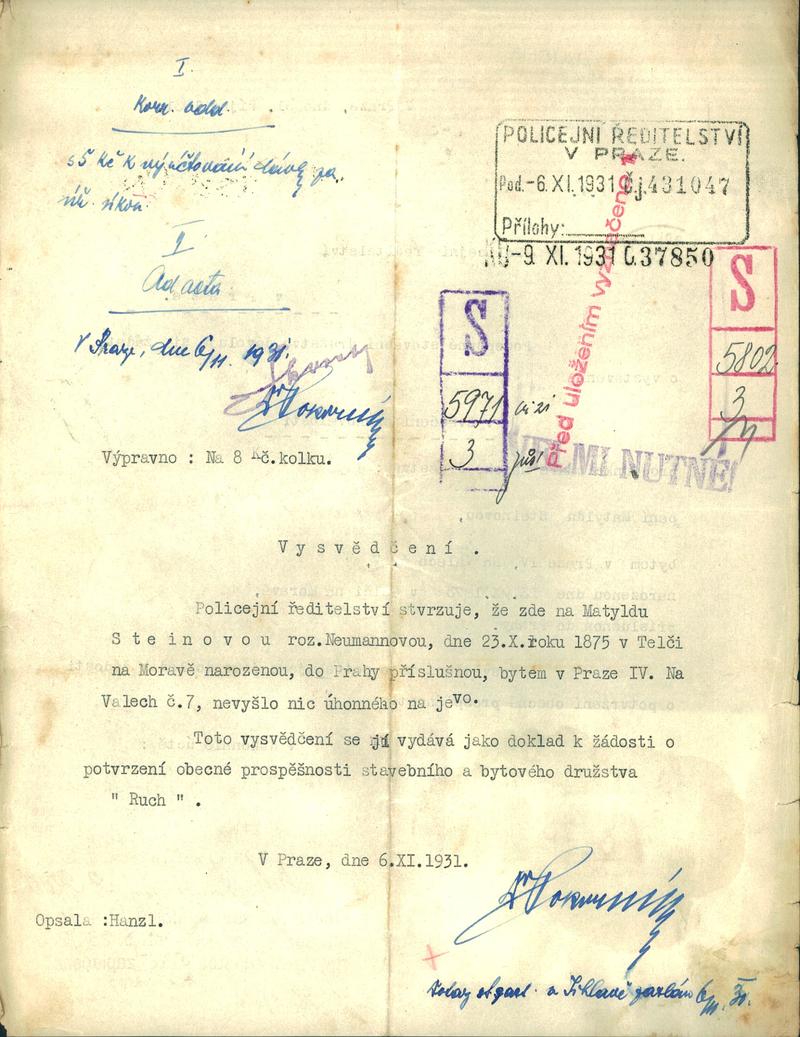 National archives Prague > Police Directorate Prague > 1931-1940 > S > Steinová Matilda