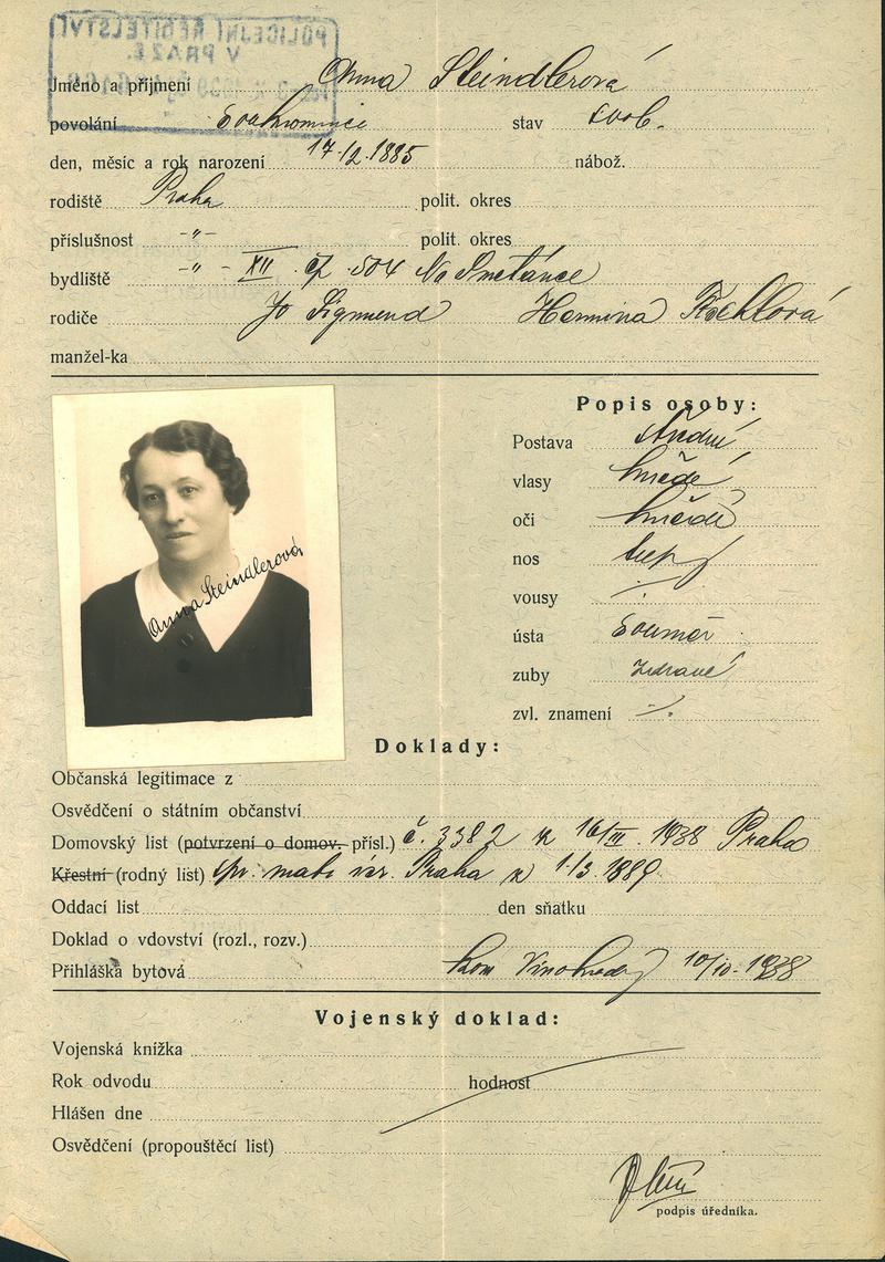 National archives Prague > Police Directorate Prague > 1931-1940 > S > Steindlerová Anna