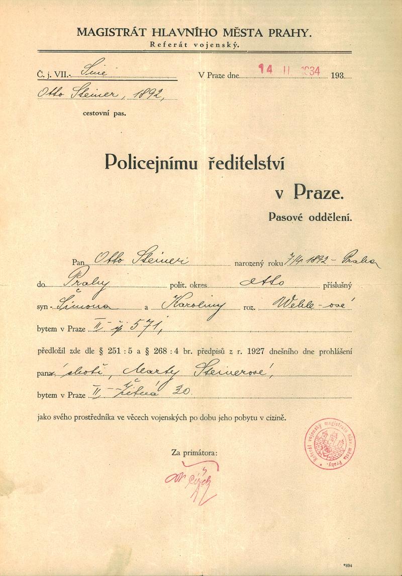 National archives Prague > Police Directorate Prague > 1931-1940 > S > Steiner Ota