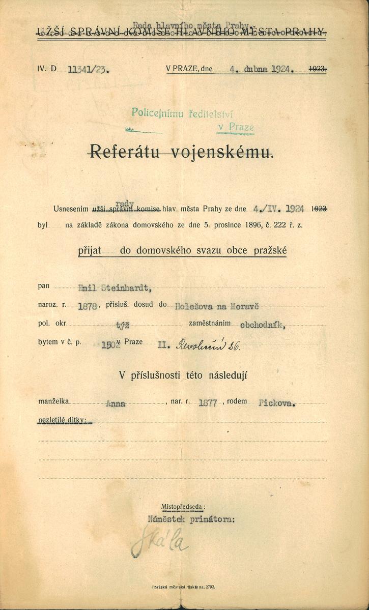 Steinhardt Emil: NEZPRACOVÁNO