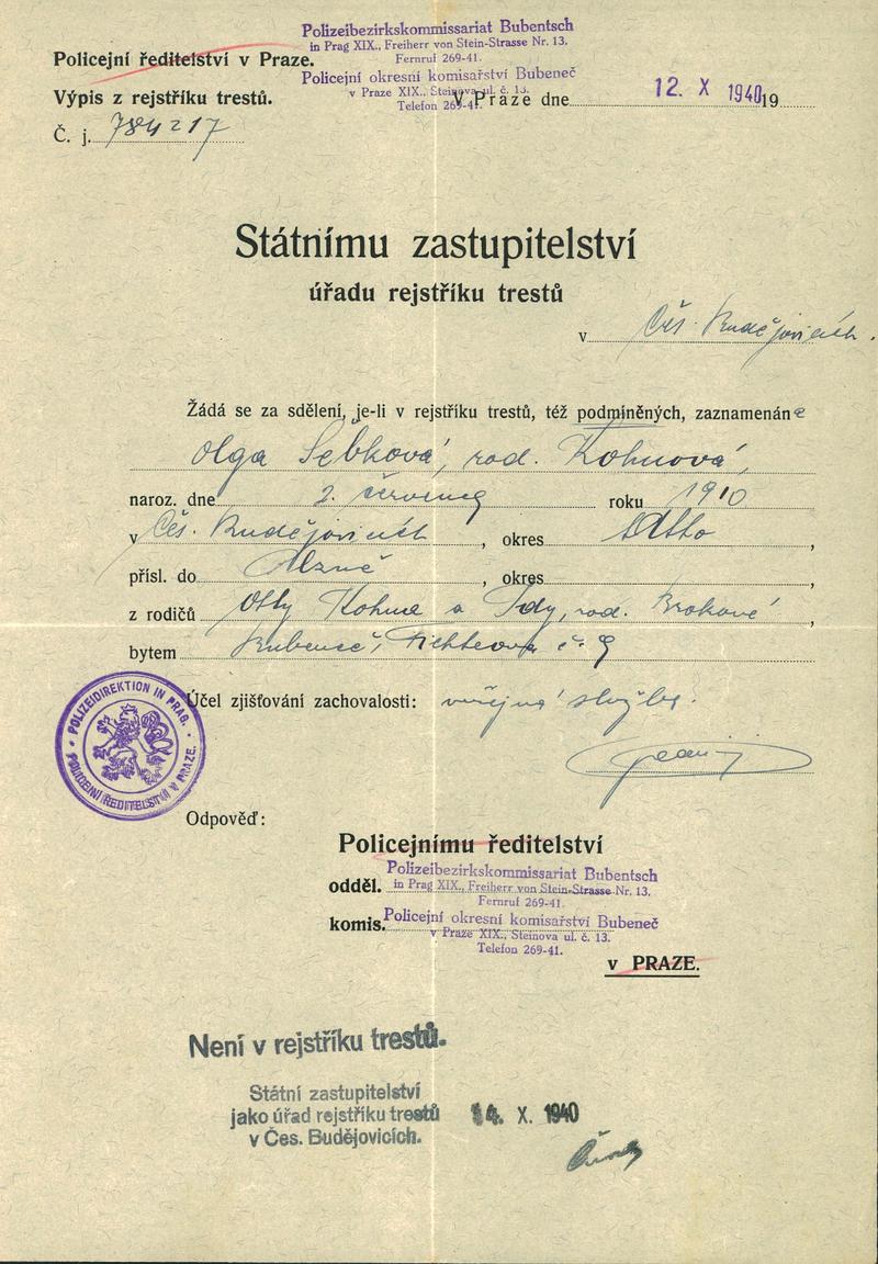 National archives Prague > Police Directorate Prague > 1931-1940 > S > Šebková Olga