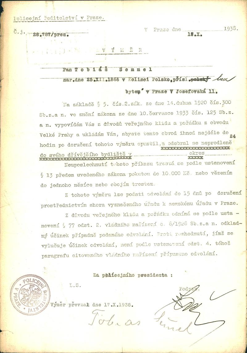 National archives Prague > Police Directorate Prague > 1941-1950 > S > Semmel Tobiaš