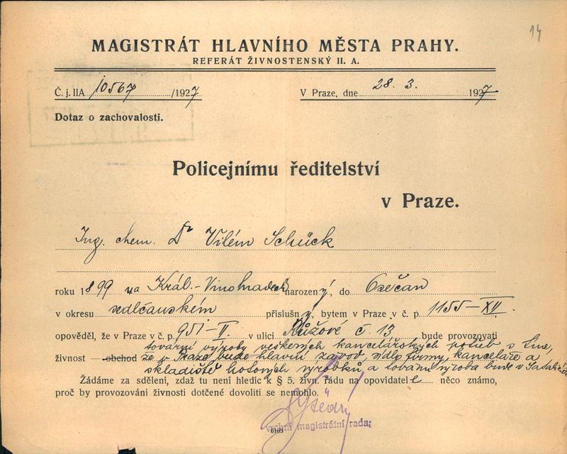 Schück Vilém: NEZPRACOVÁNO