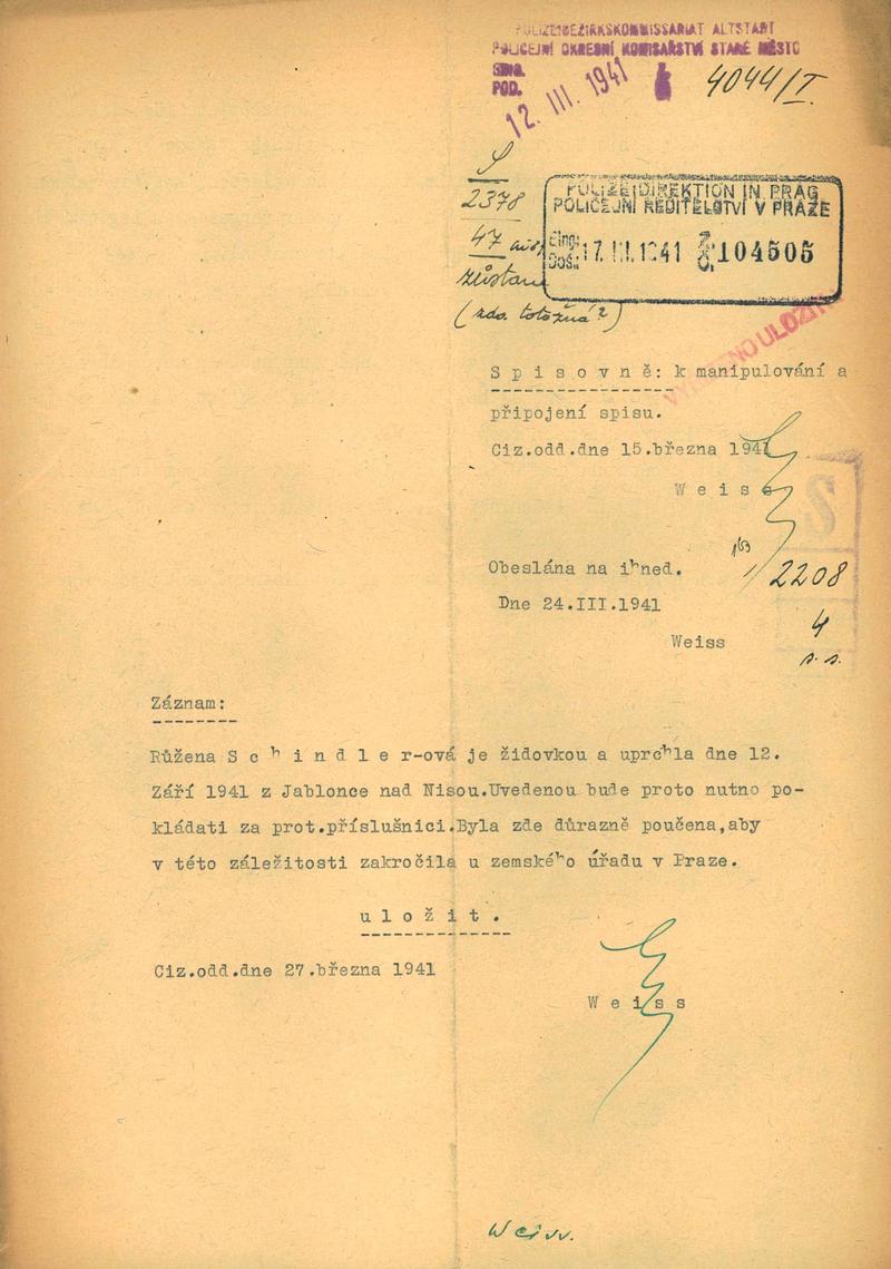 National archives Prague > Police Directorate Prague > 1941-1950 > S > Schindlerová Růžena