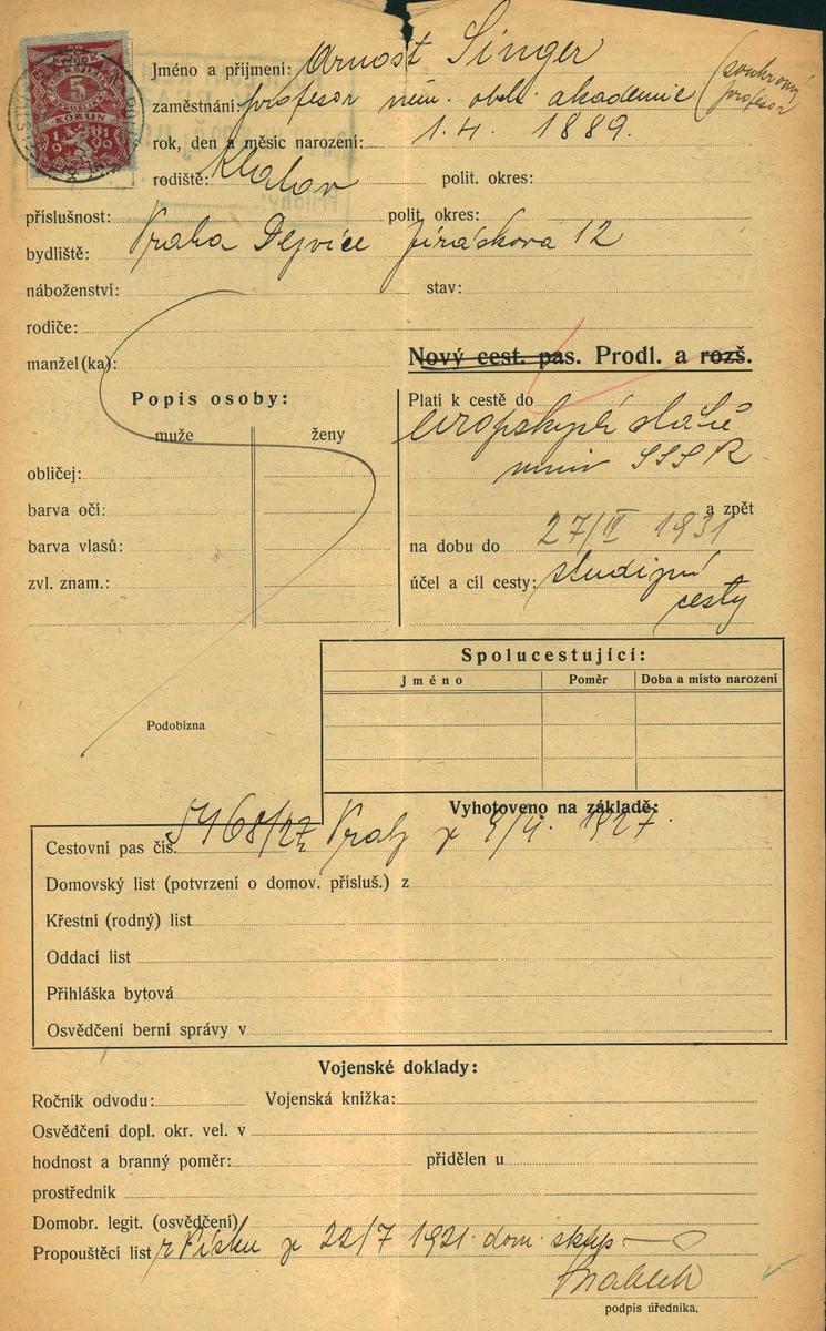 Singer Arnošt: NEZPRACOVÁNO