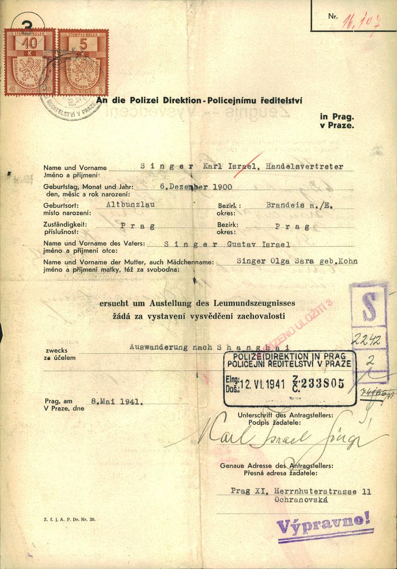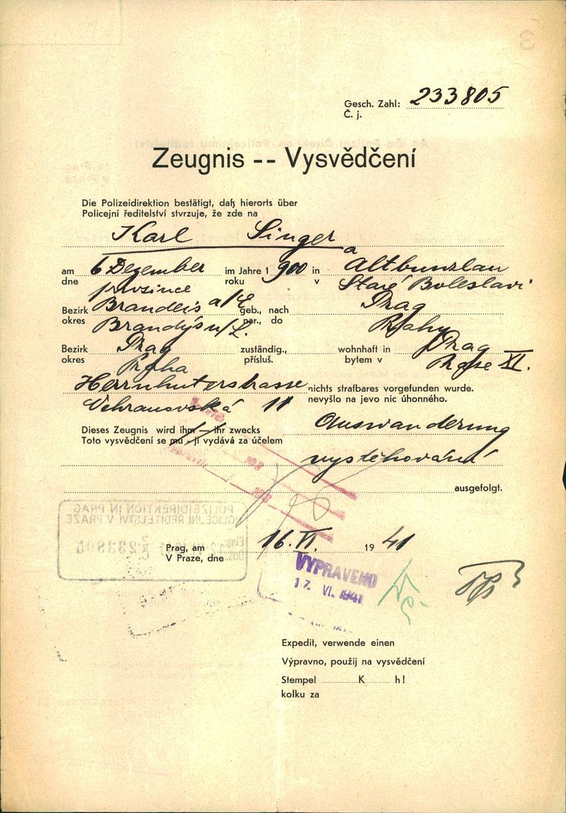 National archives Prague > Police Directorate Prague > 1941-1950 > S > Singer Karel