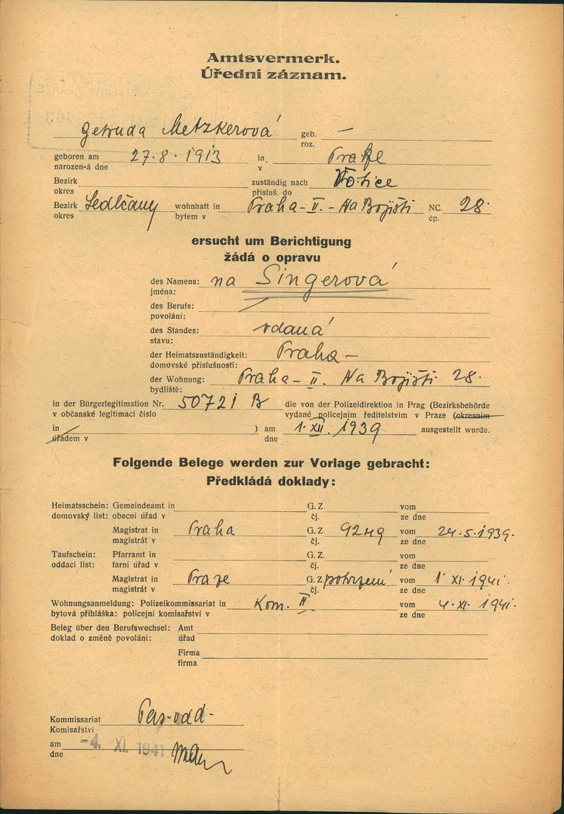 National archives Prague > Police Directorate Prague > 1941-1950 > S > Singerová Gertruda