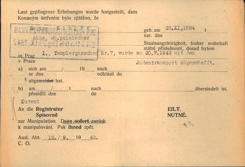 This database contains the names and fates of those who were deported from the territory of today’s Czech Republic, be it their homeland or may they have been deported to the Theresienstadt ghetto before from different european countries. Further, it contains basic information on those men, women and children, most of whom were Roma or Sinti, who died as prisoners of the so-called „Gypsy camp I“ Lety u Písku.