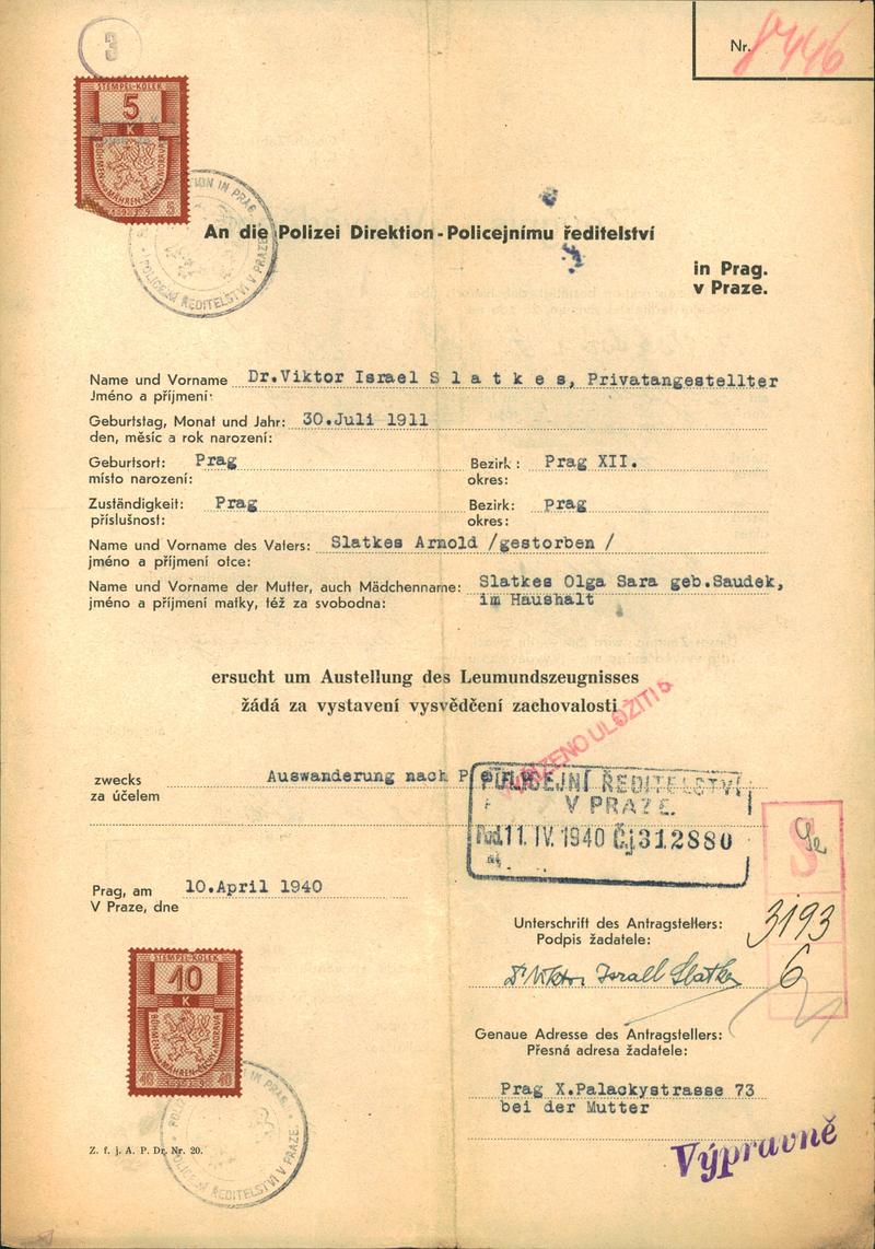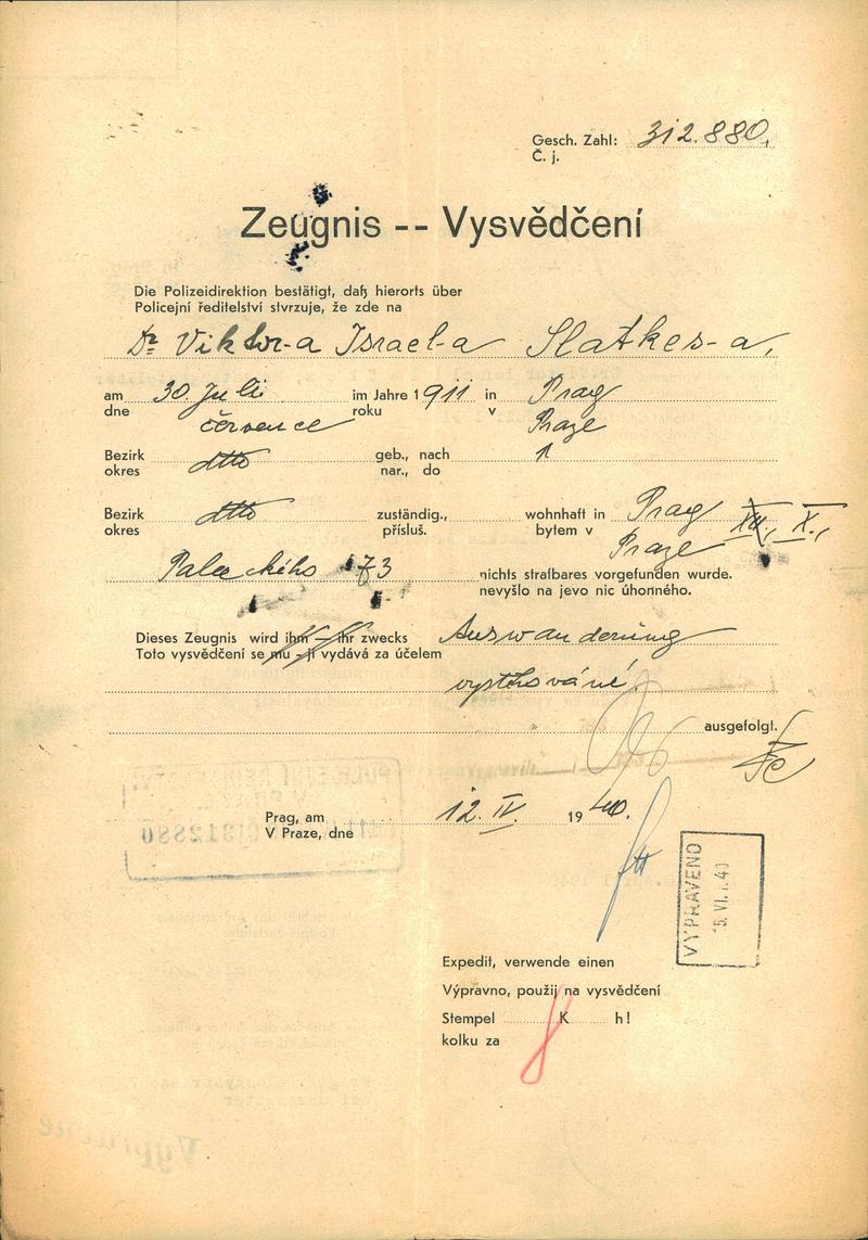 National archives Prague > Police Directorate Prague > 1941-1950 > S > Slatkes Viktor
