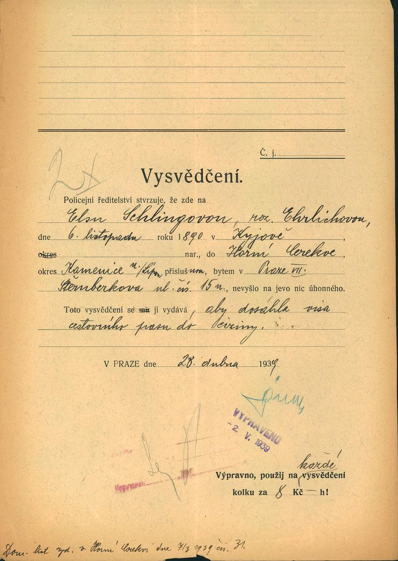 National archives Prague > Police Directorate Prague > 1941-1950 > S > Schlingová Eliška