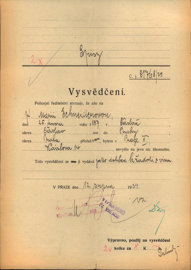 National archives Prague > Police Directorate Prague > 1941-1950 > S > Schneiderová Marie