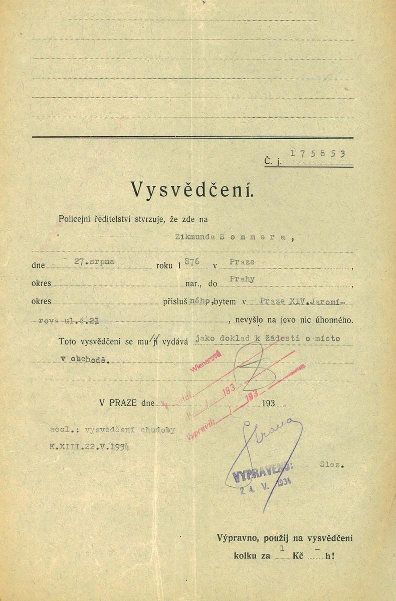 National archives Prague > Police Directorate Prague > 1941-1950 > S > Sommer Zikmund