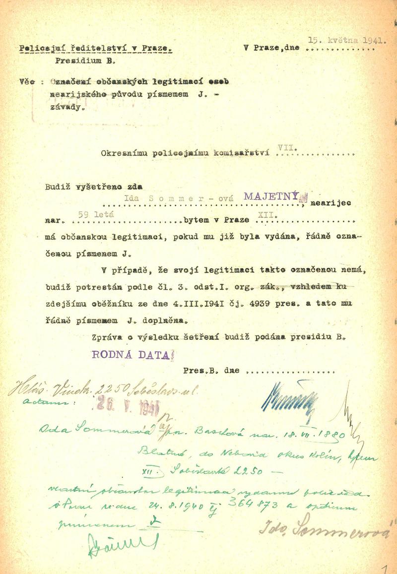 National archives Prague > Police Directorate Prague > 1941-1950 > S > Sommerová Ida