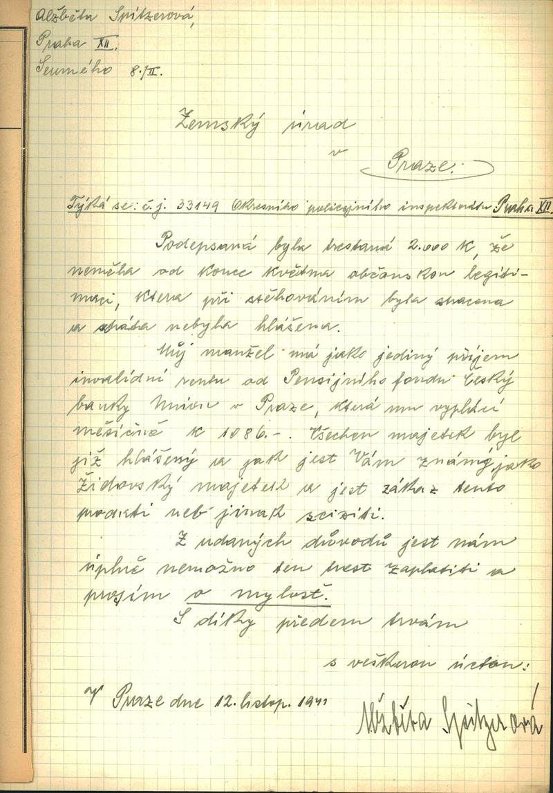 National archives Prague > Police Directorate Prague > 1941-1950 > S > Spitzerová Alžběta