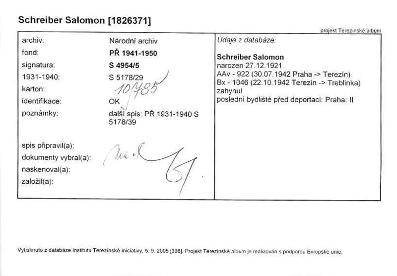 National archives Prague > Police Directorate Prague > 1941-1950 > S > Schreiber Salomon