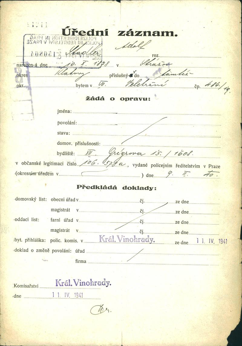 National archives Prague > Police Directorate Prague > 1941-1950 > S > Stadler Adolf
