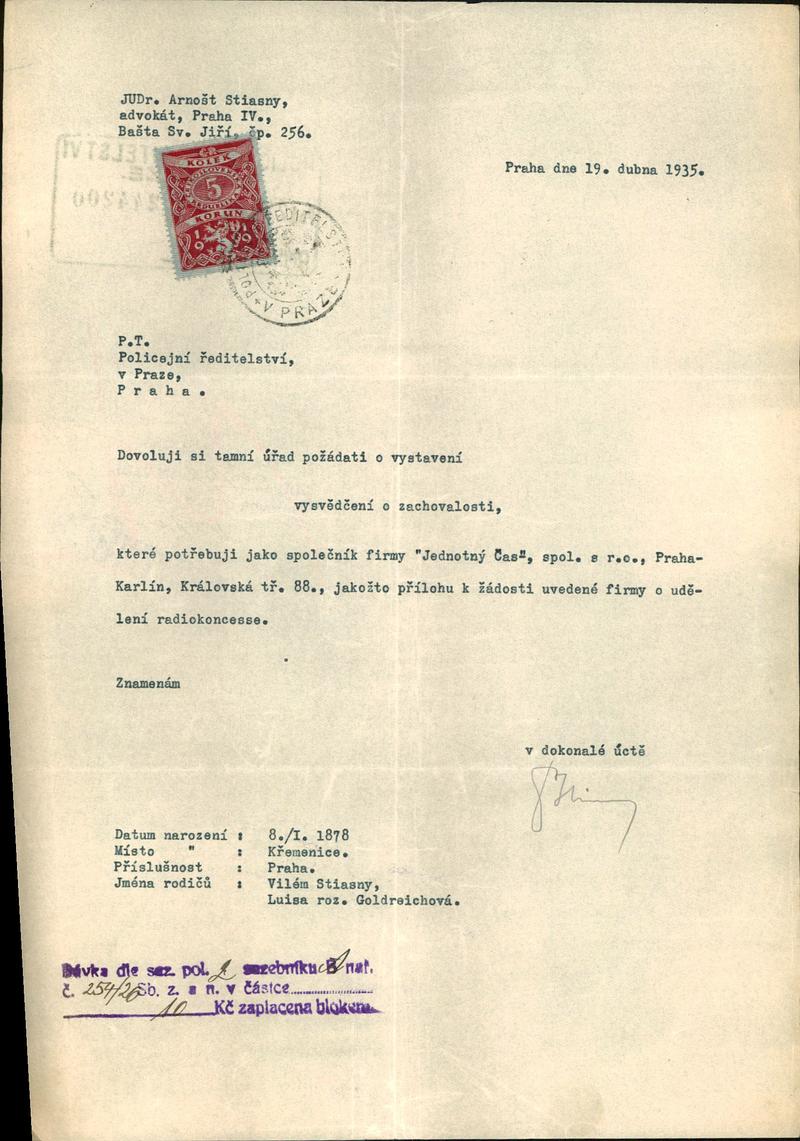 National archives Prague > Police Directorate Prague > 1941-1950 > S > Stiassný Arnošt